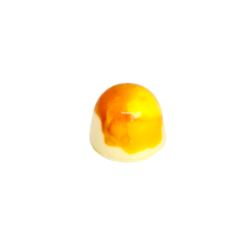 Vit chokladpralin med syrlig citrusfrukt (laktos).