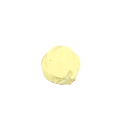 Vit chokladpralin med vit chokladfyllning och citron (laktos).