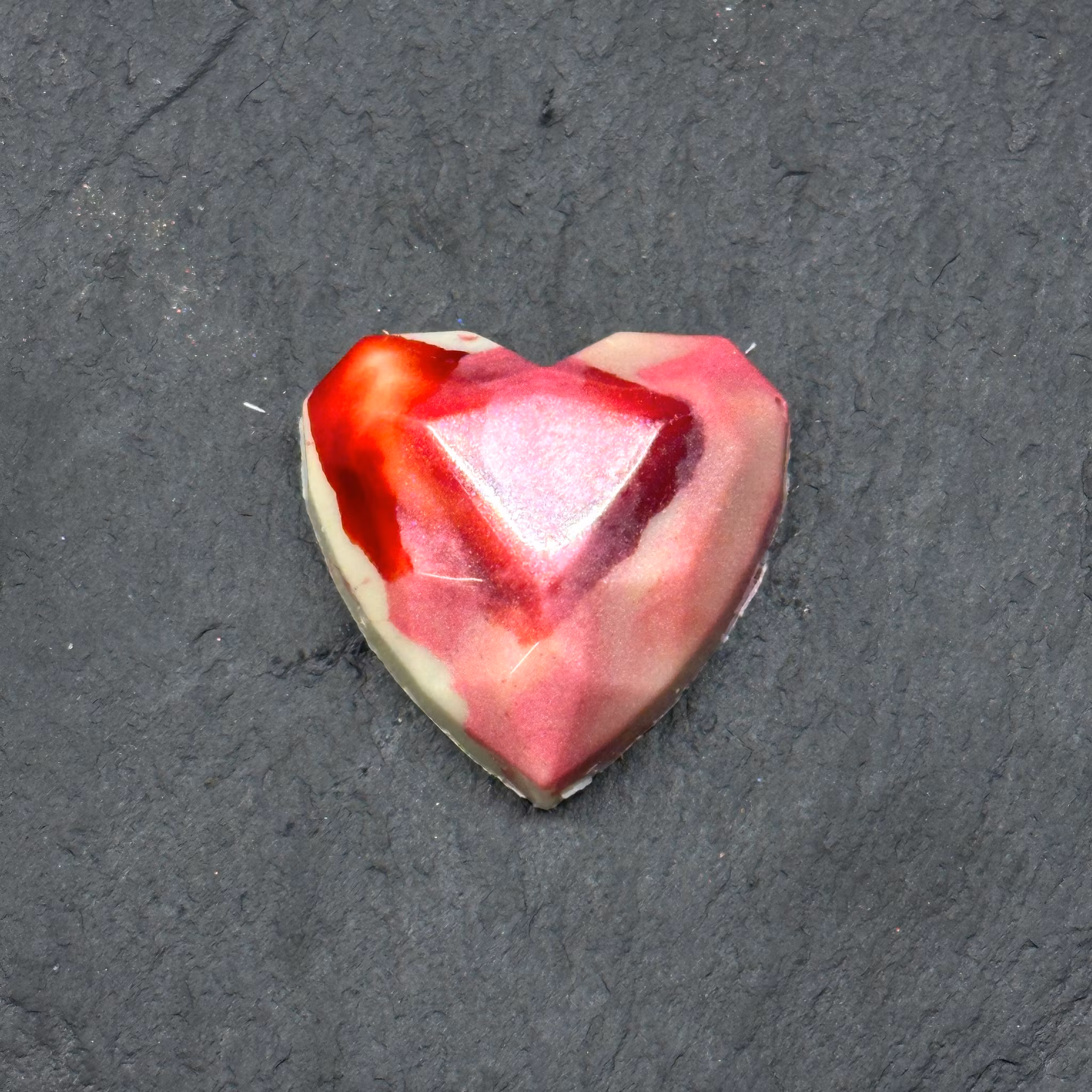 Alla Hjärtansask med 6 st handgjorda och handmålade praliner i 6 olika smaker. Transparent ask, inslagen i pappband och med etikett.