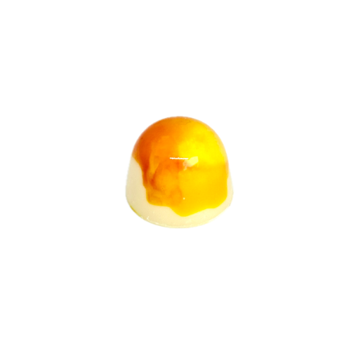 Asiatisk frukt i vit chokladpralin. En skapligt besk frukt normalt, som blir så fint rund i smaken tillsammans med vit choklad. Den här kommer tillbaka i sortimentet när solen och våren är här. Allergen: laktos