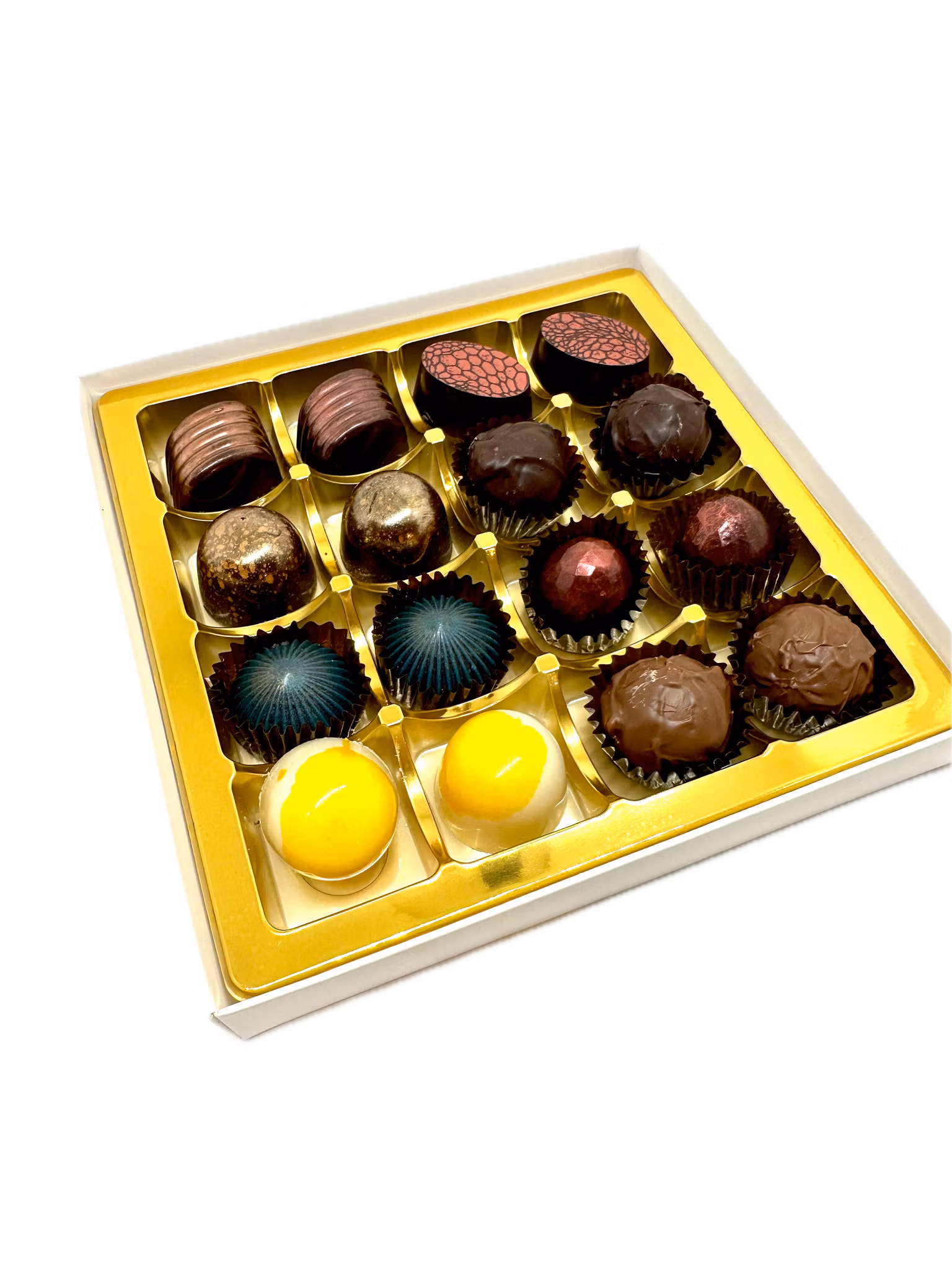Chokladask med 16 st av vårt val av blandade handgjorda kvalitetspraliner. Fin gåva för både födelsedag och som uppskattning.