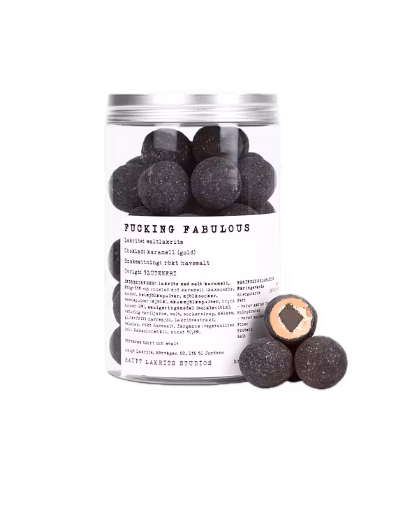 Långkokt saltlakrits smaksatt med rålakrits från Kalabrien omgiven av kolachoklad och björkrökt havssalt från dom isländska västfjordarna.